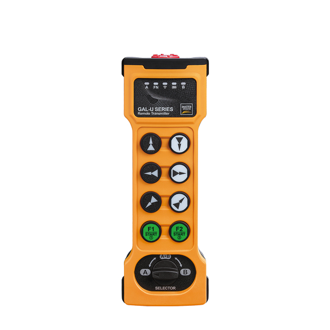 GAL手持發射器裝配急停開關,可立即響應緊急停止機械設備的各種動作和操作。急停功能符合JB/T8437-2015,EN13849:cat.3,PLd標準。