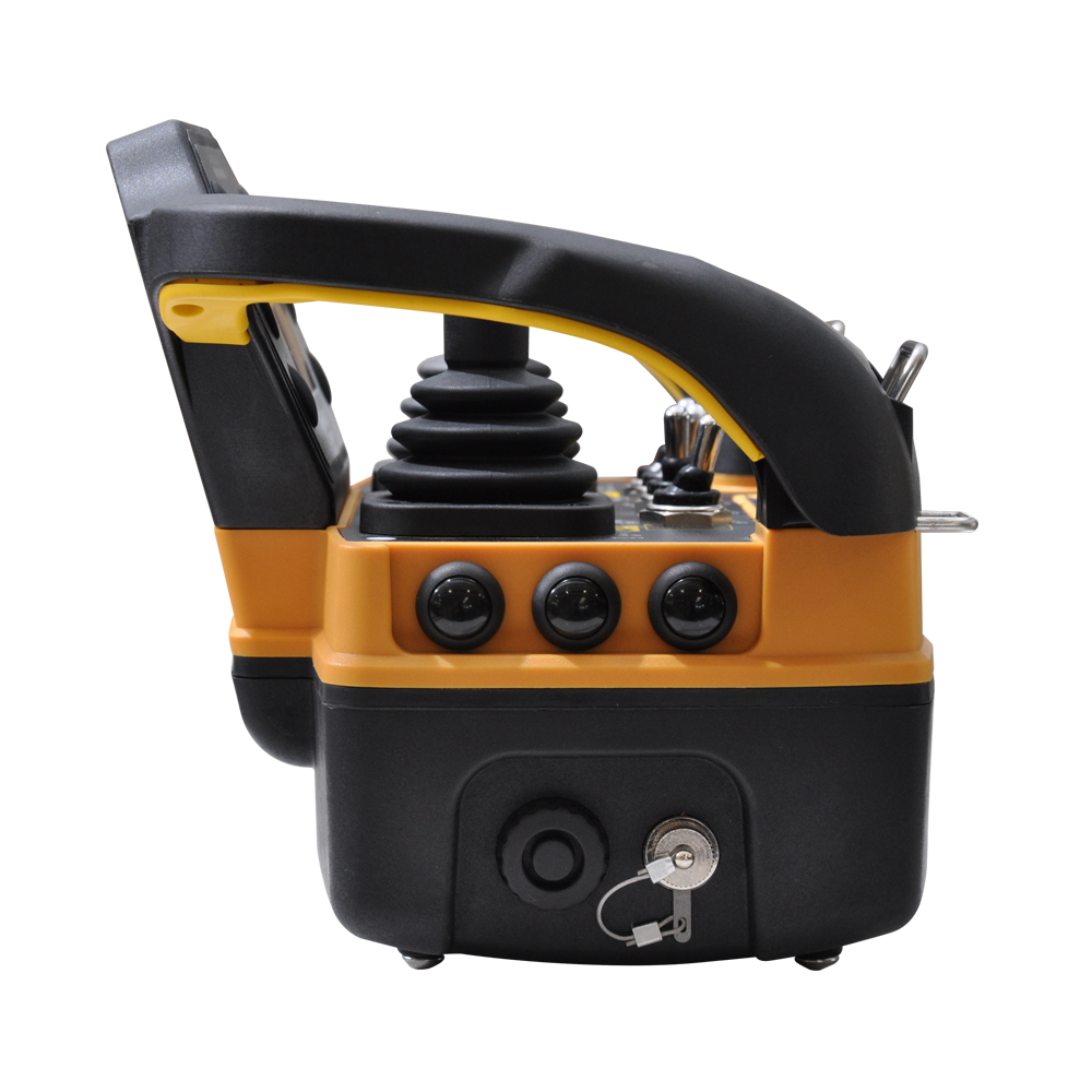 HBT系列發射器可以裝配多個撥動開關、按鈕、檔位開關和電位器,可以操作控制各項功能;比如發動機的啟動/停止、加速和減速、聲音信號以及液壓系統的流量速度控制等。采用高品質的操作桿和撥動開關,具有良好的操作手感。