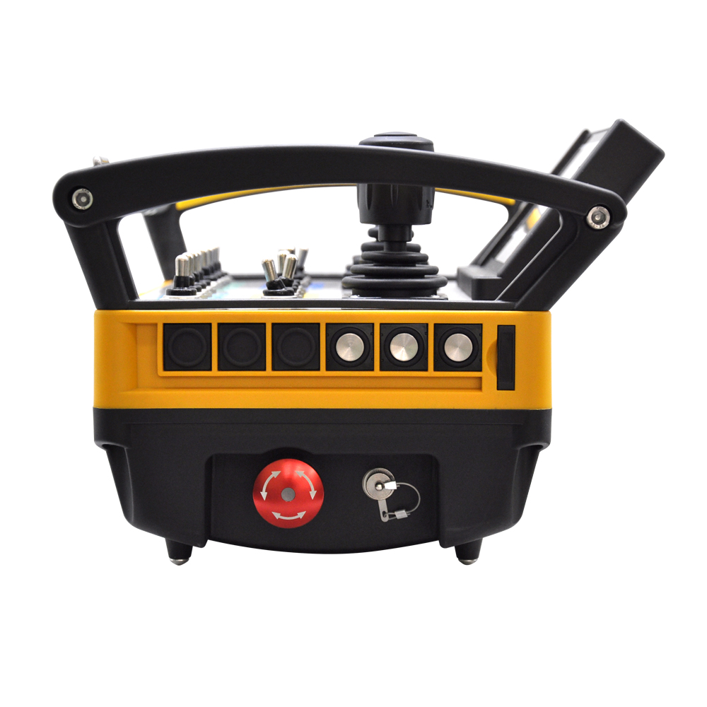 本發(fā)射器可以裝配多個撥動開關、按鈕、檔位開關和電位器,可以操作控制各項功能;比如發(fā)動機的啟動/停止、加速和減速、聲音信號以及液壓系統(tǒng)的流量速度控制等。采用高品質的操作桿和撥動開關,具有良好的操作手感。