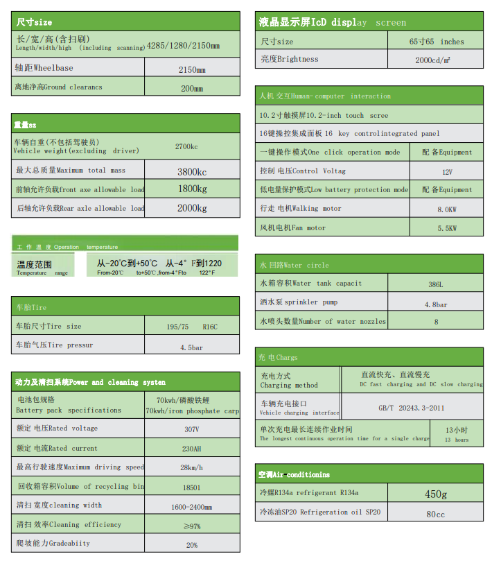 JC-DEV8240 多媒體掃路機(jī)配置有全景玻璃結(jié)構(gòu)的駕駛室,舒適冷暖空調(diào)、安全警示工作燈、10.2寸超大觸摸屏、 一鍵操作按鈕、行車 和倒車雙錄高清行車儀 。70kwh 的超大容量電池組65寸大液晶顯示屏 ;掃刷轉(zhuǎn)速采用手柄式速度調(diào)節(jié)閥控制,可以根據(jù)道路實(shí)際路況控制無級調(diào)速 ;清掃掃刷位置和吸風(fēng)口位置采用水霧噴淋裝置,確保在清潔過程中不會產(chǎn)生揚(yáng)塵造成二次污染 ;該機(jī)掃刷寬度有調(diào)節(jié)功能,可由1.6米調(diào)節(jié)至2.4米,廣泛適用于城市非機(jī)動(dòng)車道、城市廣場、公園、體育場館、會展中心等場所的清掃作業(yè)。