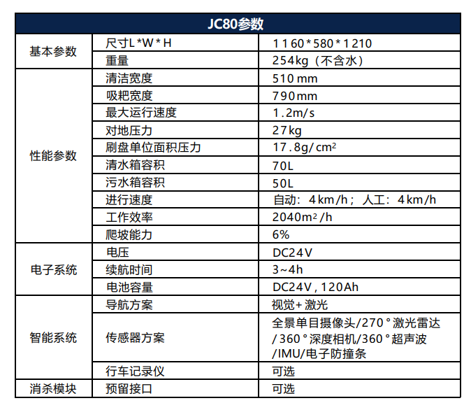 J C 8 0 專 為 各 類 商用場(chǎng)景室內(nèi)區(qū)域提供地面清潔解決方案 ,能夠自主規(guī)劃工作路徑和避障 , 自動(dòng)清掃、消毒。配備微秒級(jí)自研智能系統(tǒng) , 實(shí)時(shí)響應(yīng),實(shí)時(shí)顯示,安全避障 。主動(dòng)規(guī)劃清潔路徑,高效清洗消殺地面 , 構(gòu)建美好商業(yè)環(huán)境。
